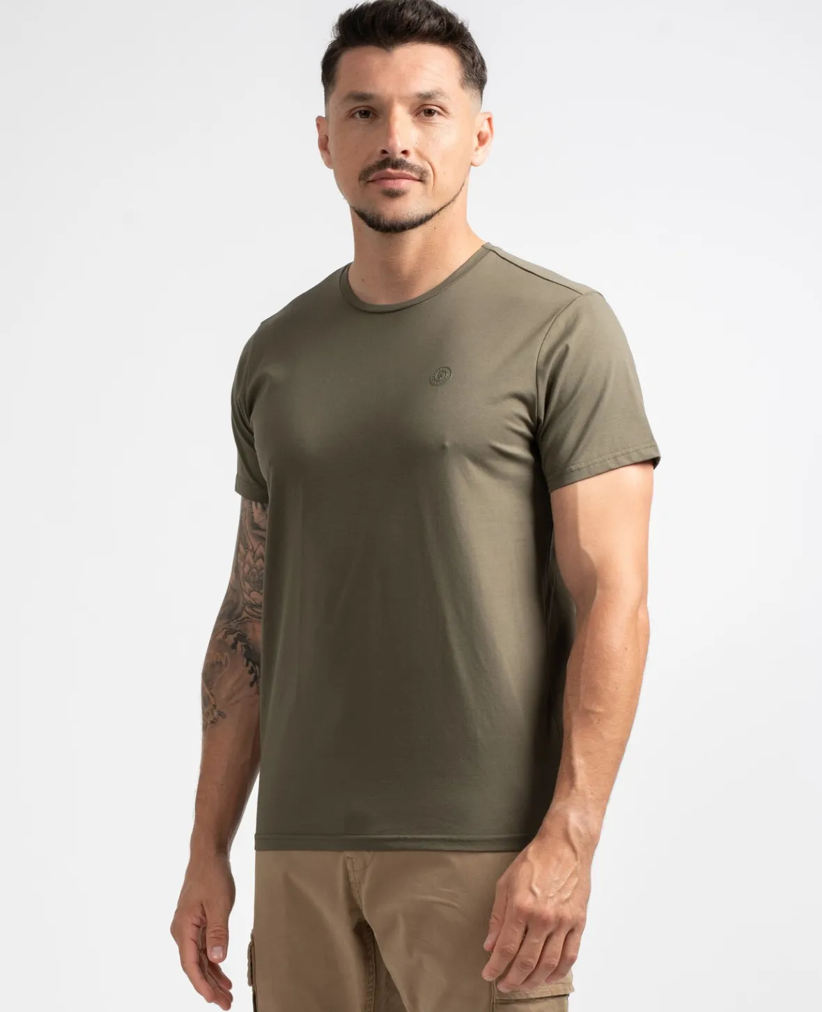 Incontournable, le t-shirt col rond à manches courtes que l’on porte en toute saison. En coton et spandex, il est stretch et près du corps.