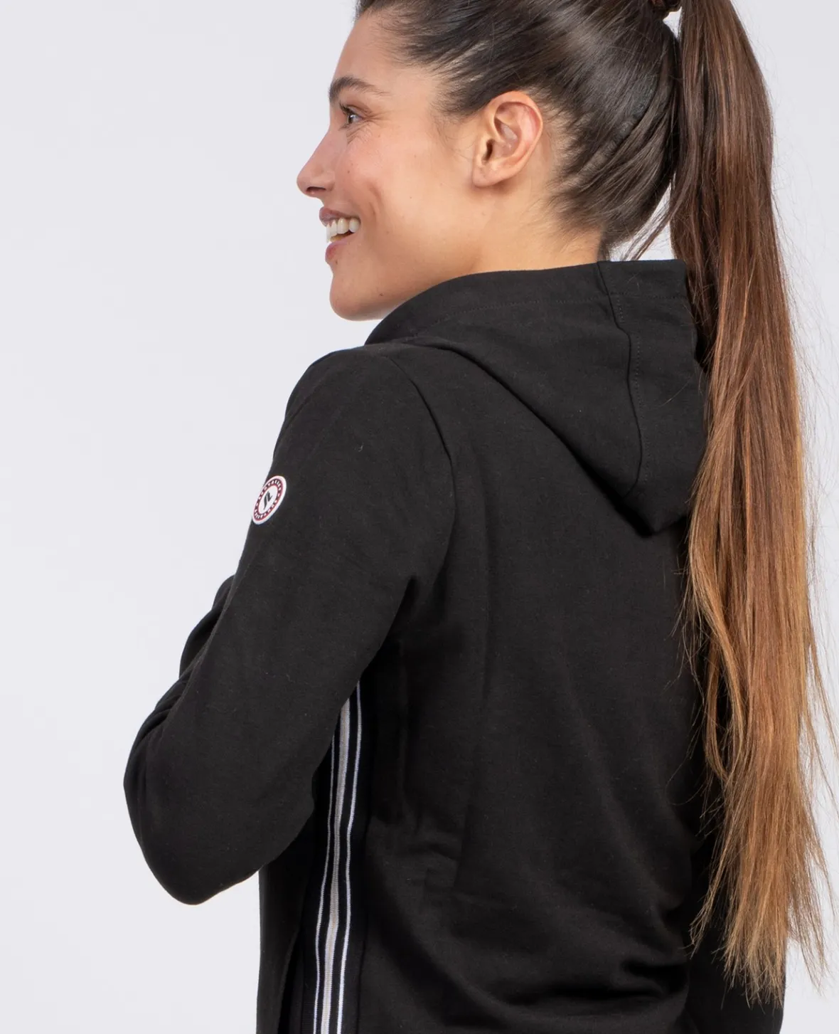 Delm fait partie de nos intemporels : cette veste à capuche en jersey est l’incontournable de vos activités sportives ou de vos moments de détente. Sa matière stretch et ses bandes élastiques sur le côté la rendent ultra confortable.