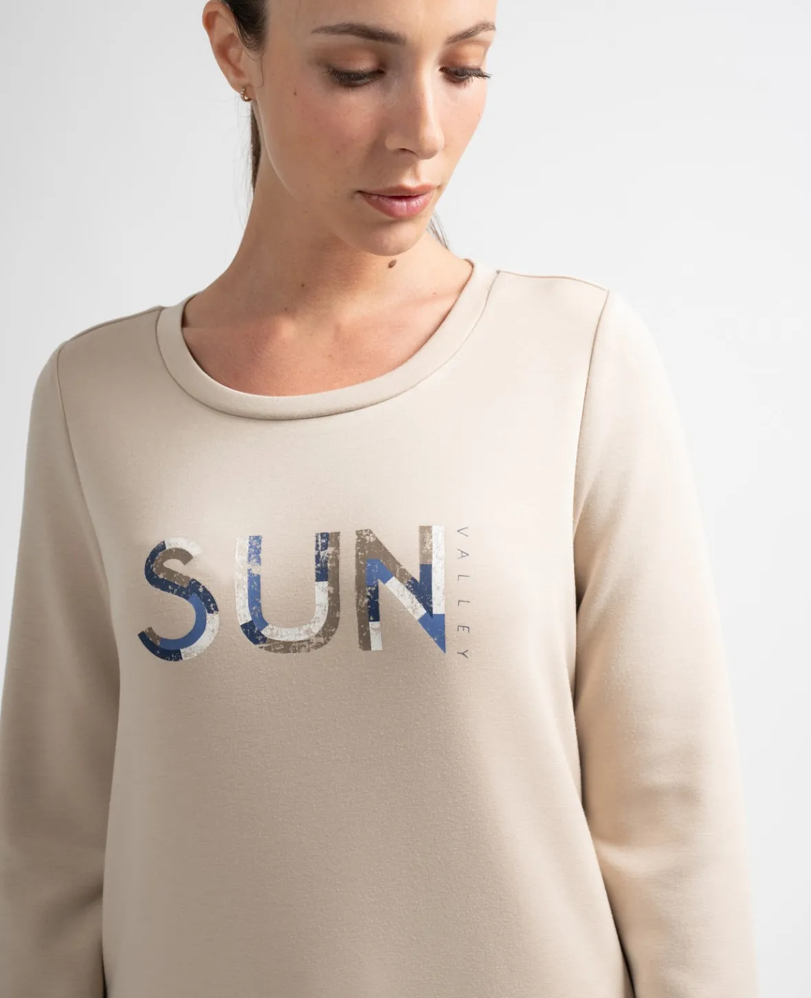 En stretch, notre sweat en molleton Dolie arbore fièrement notre marque sur la poitrine. Col rond et manches longues, il peut se porter à même la peau ou sur un t-shirt.