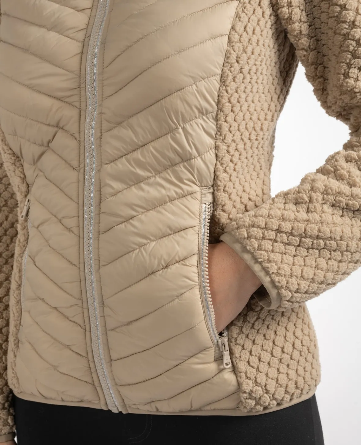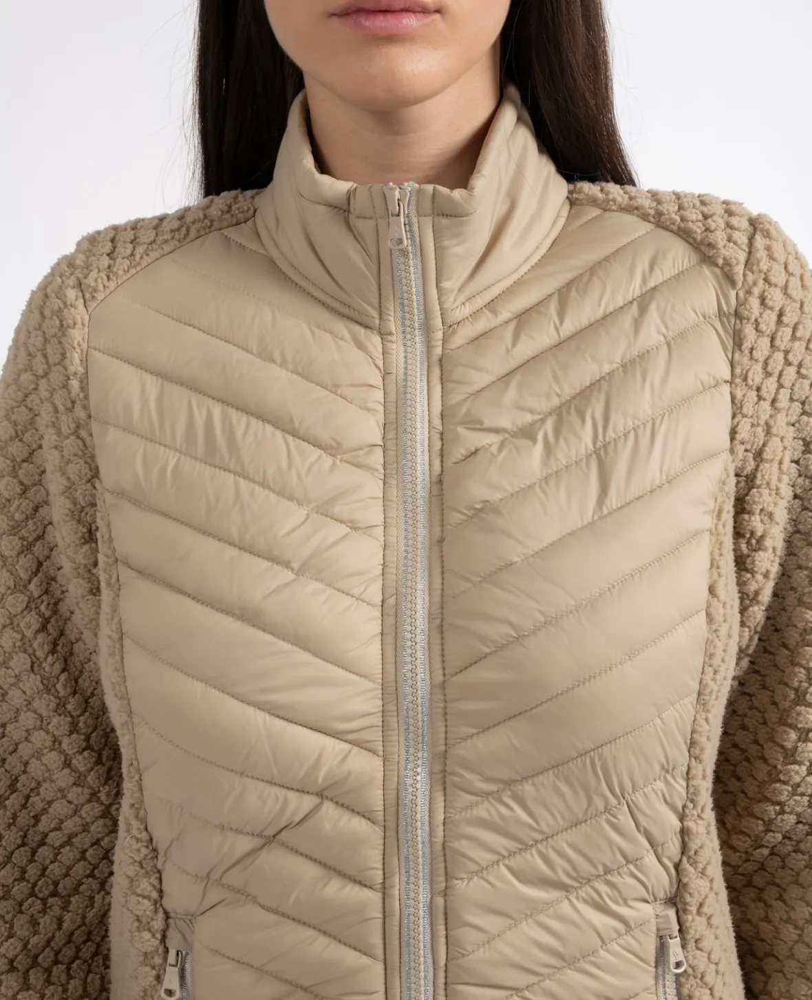 Pour avoir chaud cet hiver, optez pour la veste Dylow en sherpa et polyester. Douce, chaude, polyvalente, elle est entièrement zippée pour être portée ouverte ou fermée.