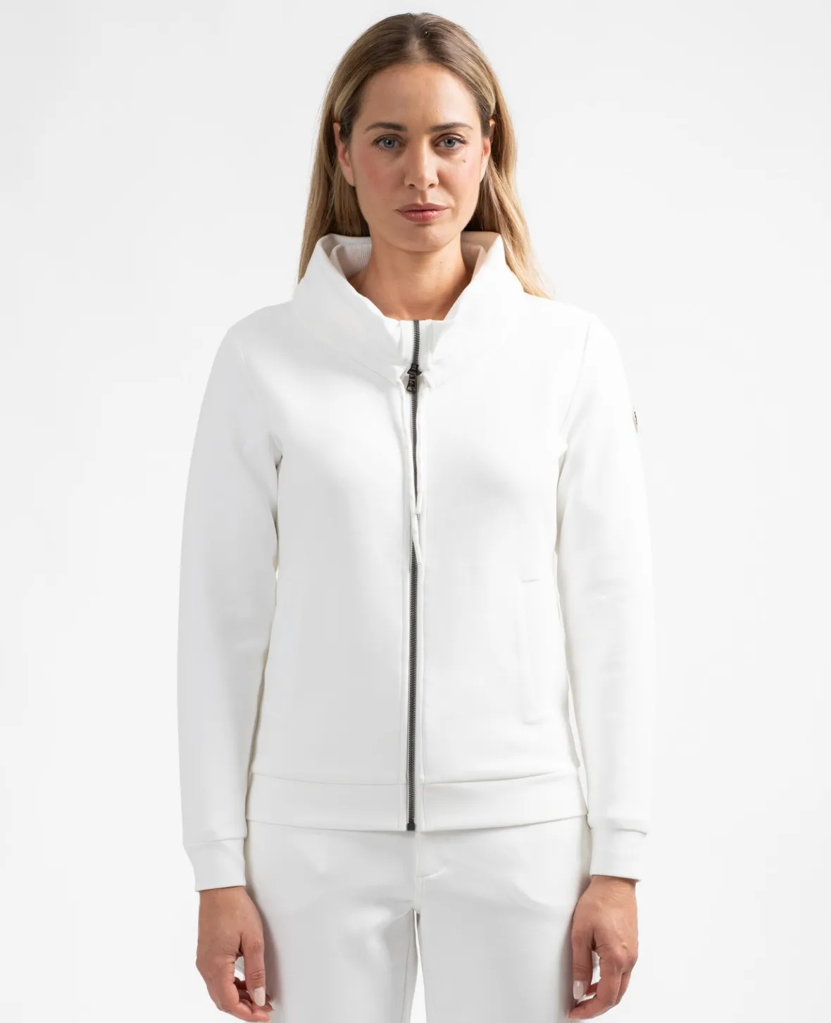 Col châle pour la fémininité, Dyniah c’est la veste que l’on porte dès que les temératures baissent. Entièrement zippée et avec un cordon de serrage au col, c’est le mix idéal idéal entre chaleur et confort.