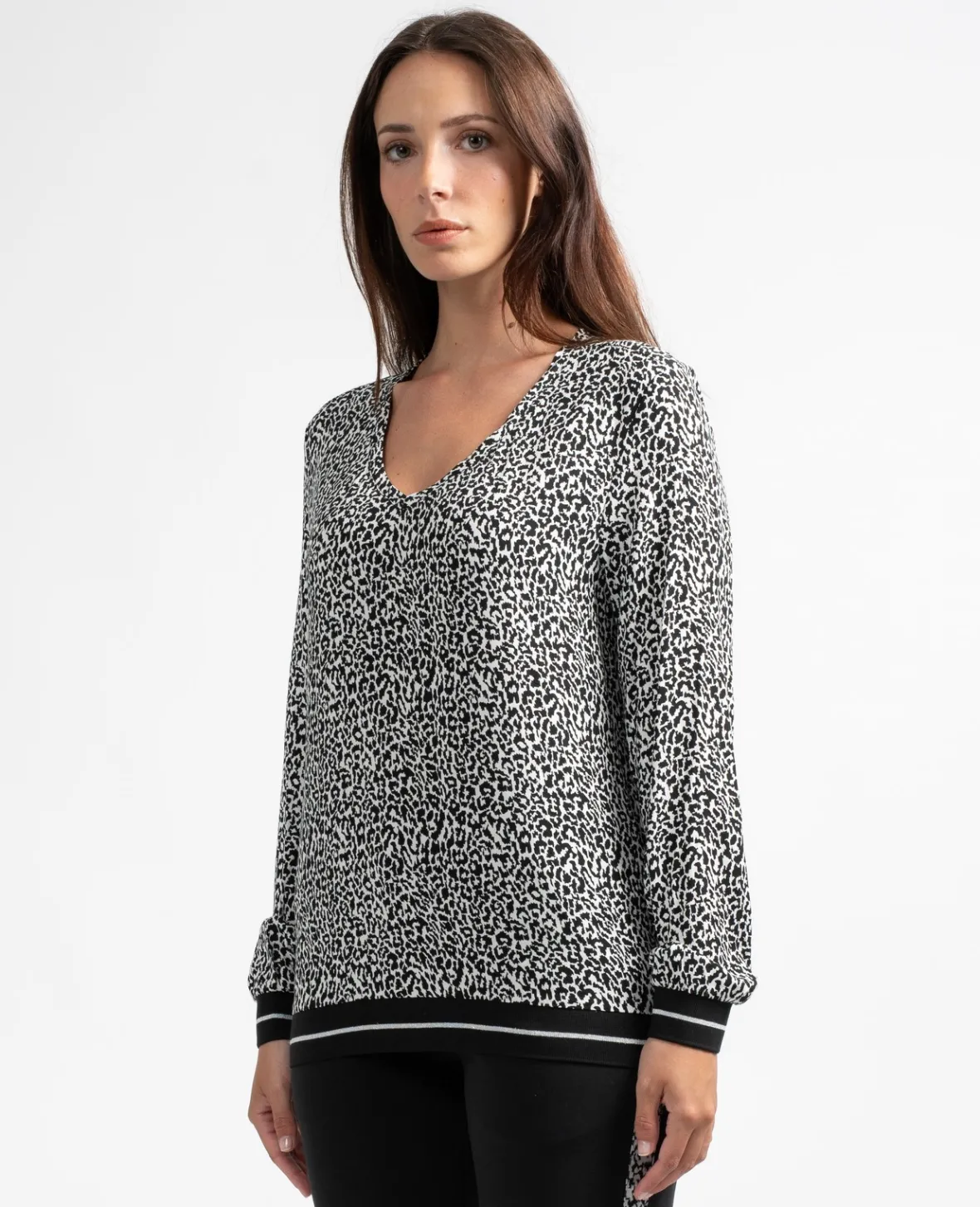Une blouse qui joue la carte de l’audace avec son imprimé all over ! En 100 % viscose et à manches longues, elle est parfaite avec un jean ou sous une veste. Col V et détails bas de manches et taille.