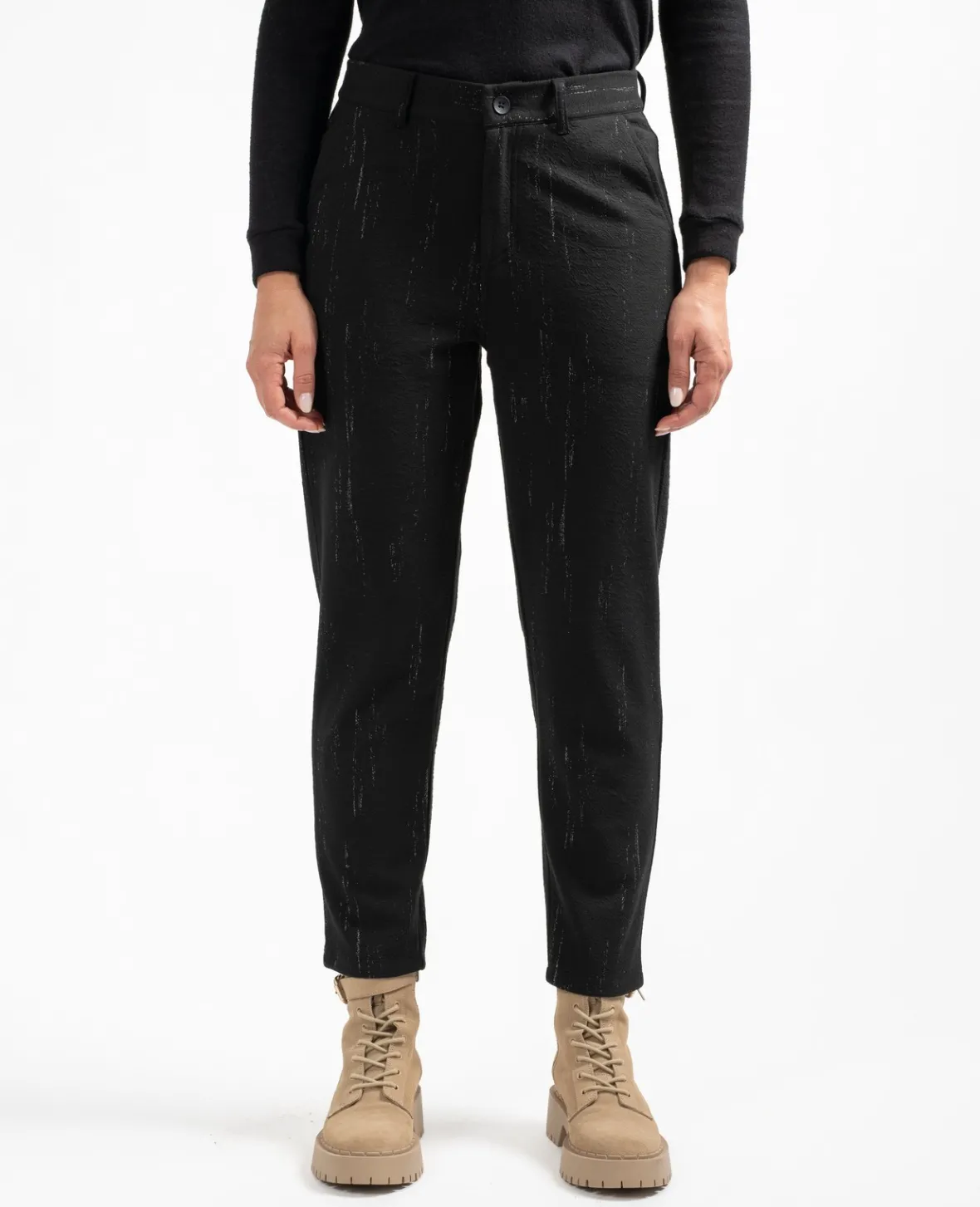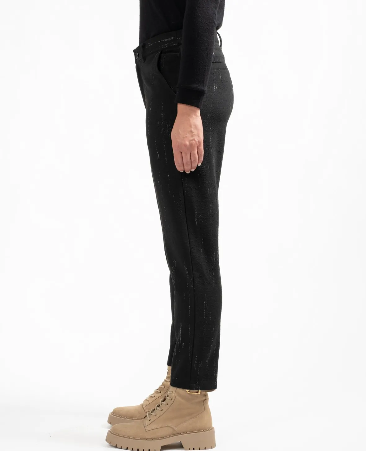 Ce pantalon légèrement stretch et sa coupe droite se porte aussi bien en total look avec la veste Ygbo qu’avec un t-shirt basique. Sa matière avec une pointe de lurex lui donne un aspect brillant que l’on adore. Poches sur le côté et fermeture avec bouton.