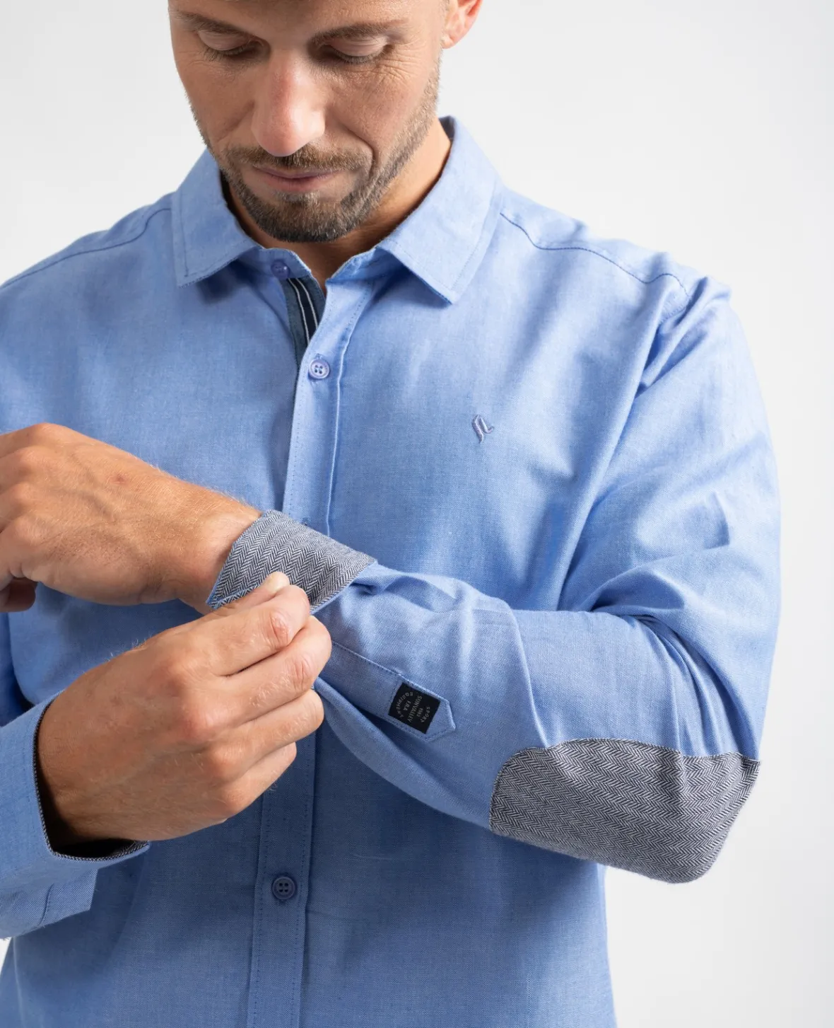 Chemise manches longues de coupe classique, Oxford est indémodable. Belle matière 100% coton, coudières, c’est l’indispensable de votre dressing.
