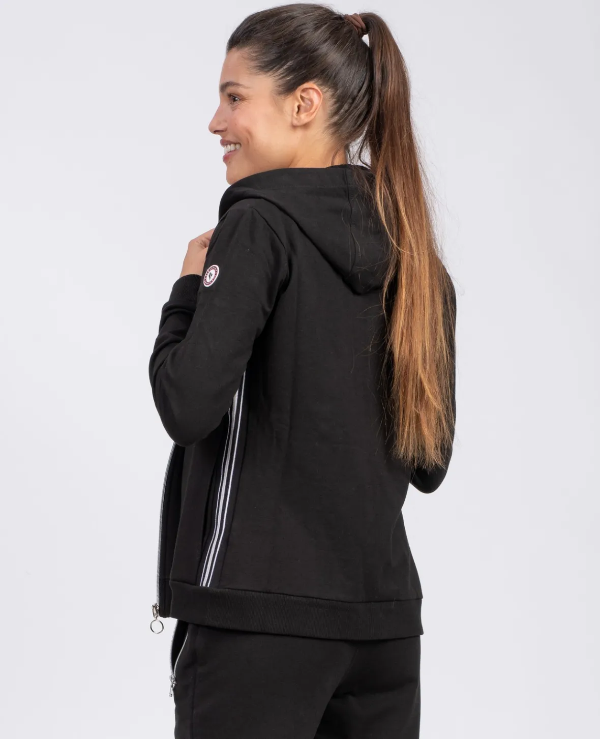 Delm fait partie de nos intemporels : cette veste à capuche en jersey est l’incontournable de vos activités sportives ou de vos moments de détente. Sa matière stretch et ses bandes élastiques sur le côté la rendent ultra confortable.