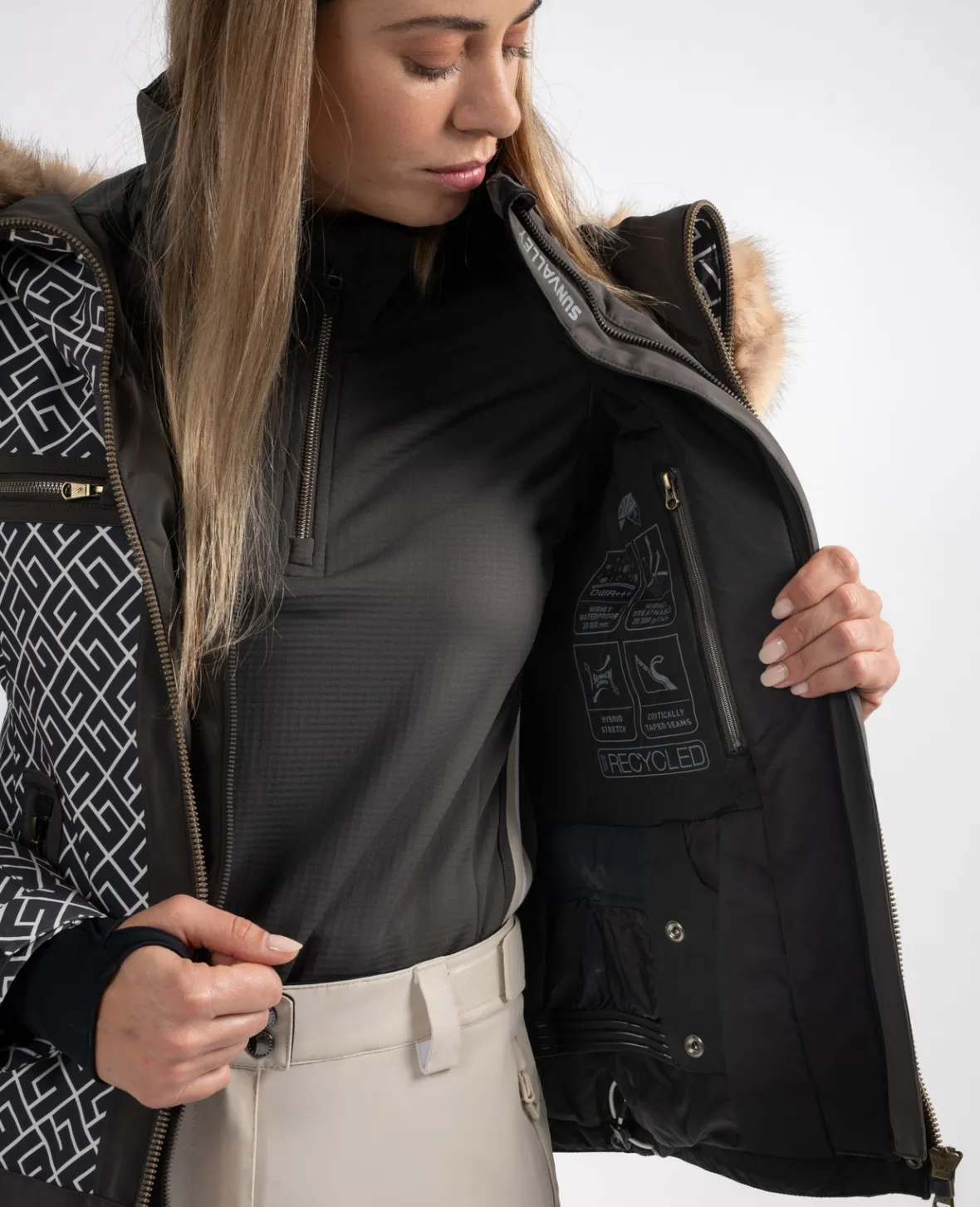 Kholl c’est la féminité par excellence avec son grand col châle en fourrure synthétique. Sa coupe cintrée, son mix de matières et de couleurs en font le modèle préféré des skieuses exigeantes. Chaude, technique, respirante, elle est parfiate quelles que soient les conditions climatiques. Se décline en plusieurs coloris.